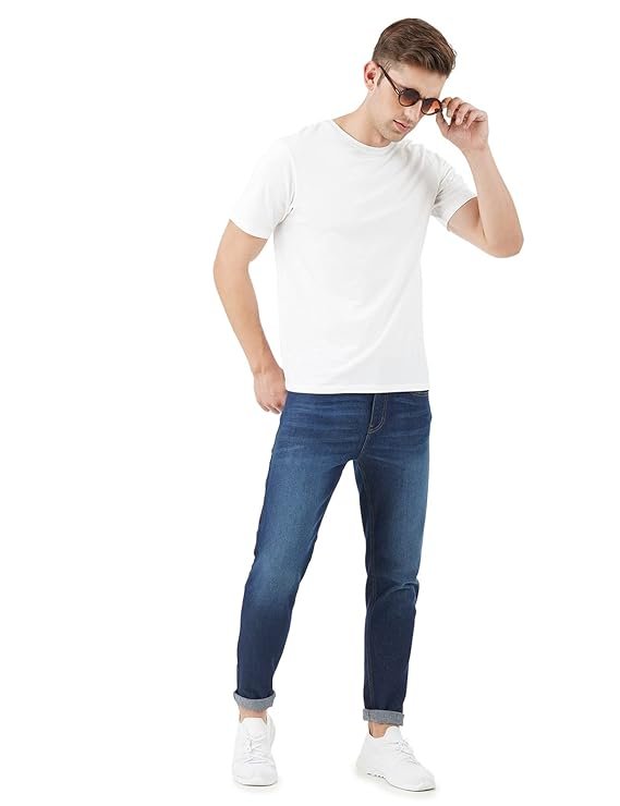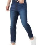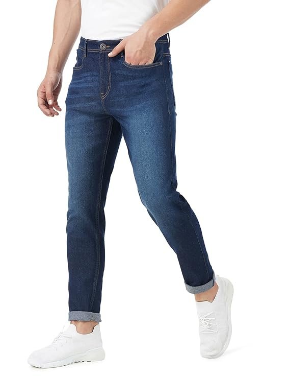 INKD Men’s Contrast Stitch Stretchable Slim Fit Jeans -Dark Night