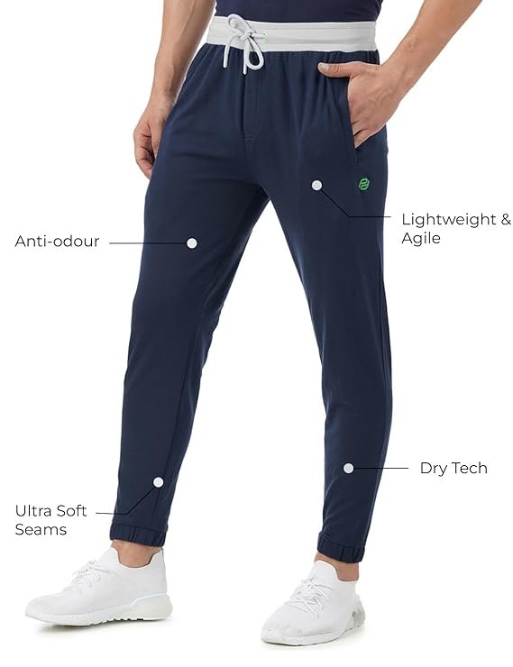PUMP’D Men’s Breathable Cotton Jogger Pants with Elasticated Waistband & Drawstring – Dry Tech, Anti-Odor, Lightweight, Soft Seams – Wavy Navy
