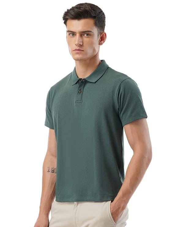 FYLTR Men’s Casual Polo T-Shirt with Contrast Placket -Ever Green