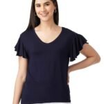 FYLTR Women’s Soft Cotton Blend Fashion Top with Ruffle Sleeves – Heavy Navy
