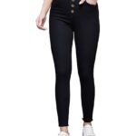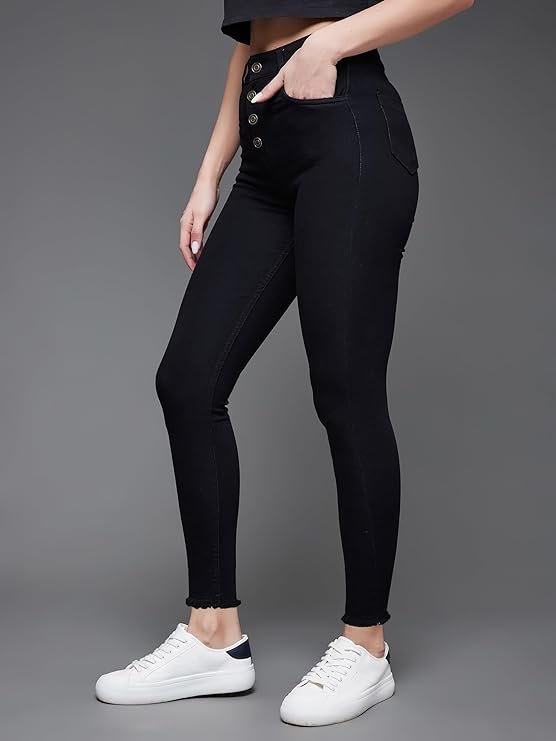 SKU: Miss Chase Women\'s Skinny High Rise Solid Cropped Fringed Stretchable Denim Jeans Category: