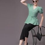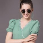 Selvia Women’s Crinkle Cotton Embroidery Causal Wear Regular Top