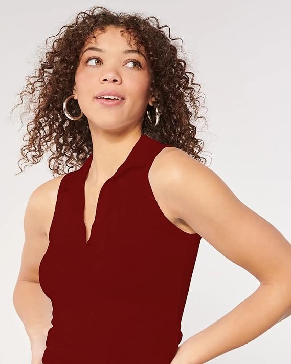 Shasmi Women’s & Girls’ Solid Ribbed Polo Club Collar Sleeveless Slim Fit Simplicity Tank Tops
